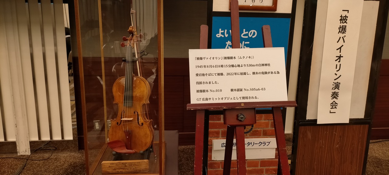 On August 6th, Tonan Rotary Club held a concert in front of the Atomic Bomb Dome, debuting a violin made of hibakujumoku wood.